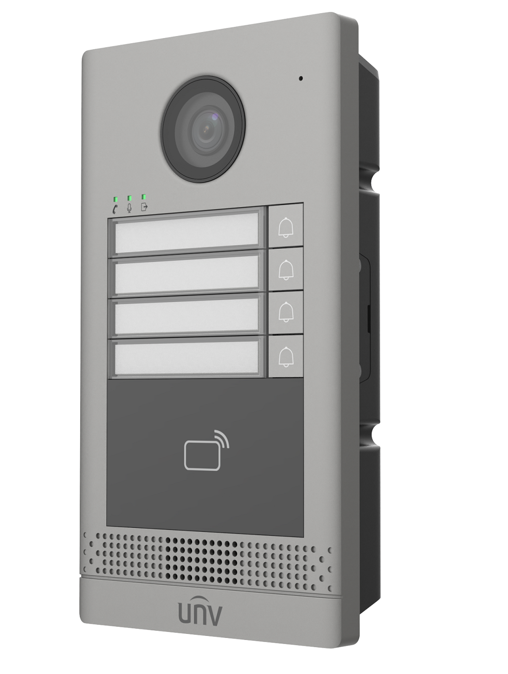 Стандартный PoE/ 12В DC, IC считыватель; Хранилище: 10000 карт, Встроенный микрофон и динамик, PoE, 1 RS485 интерфейс, 1 Wiegand, 2 реле, 4 тревожных входа, IP65, IK08 -40°C ~ 60°C, Поддержка приложения UNV-Link