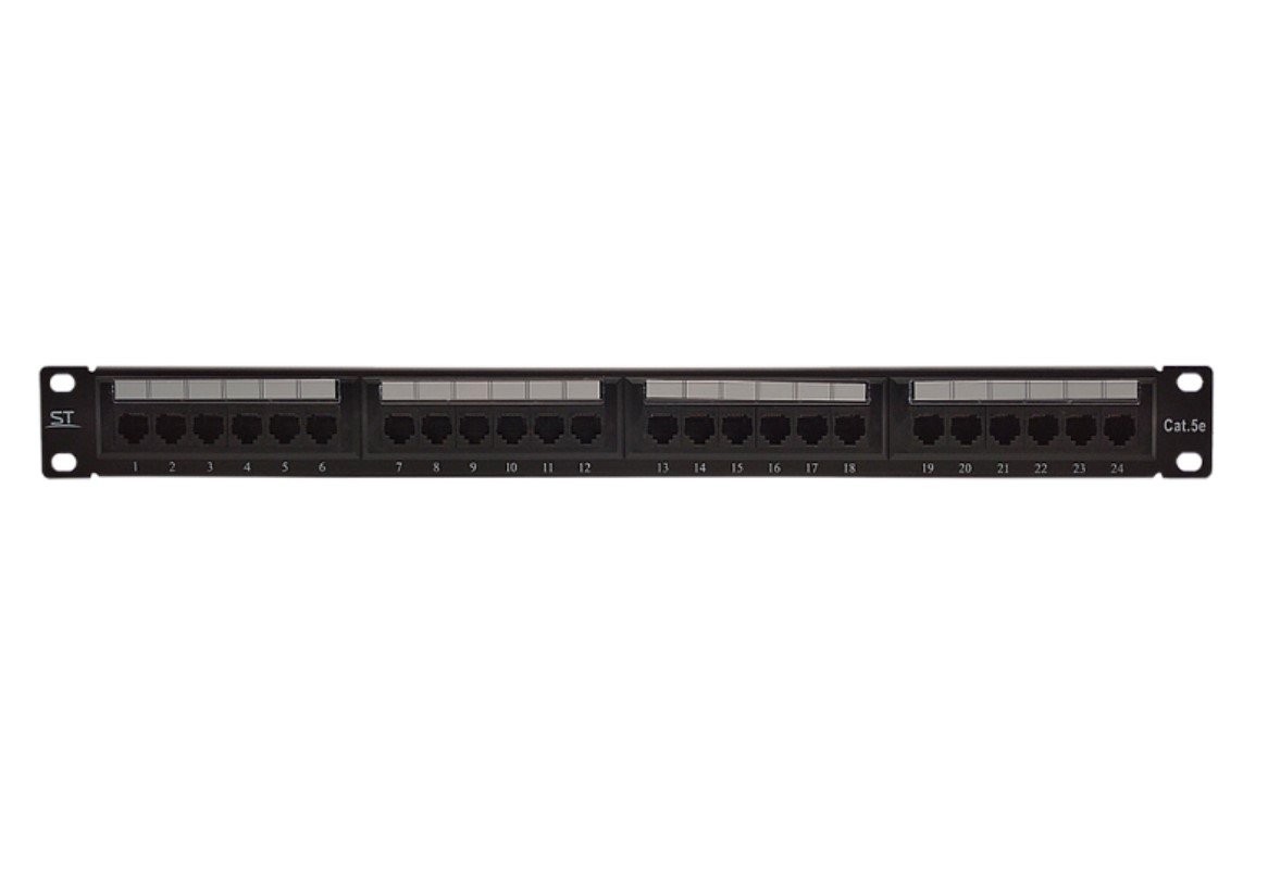 Коммутационная панель (патч-панель) ST-PP24-01, Предназначена для коммутации активного сетевого оборудования и оборудования рабочих мест коммутационными шнурами,для монтажа в коммутационные шкафы, Материал корпуса: Металл, АБС-пластик, -10…+60°С.