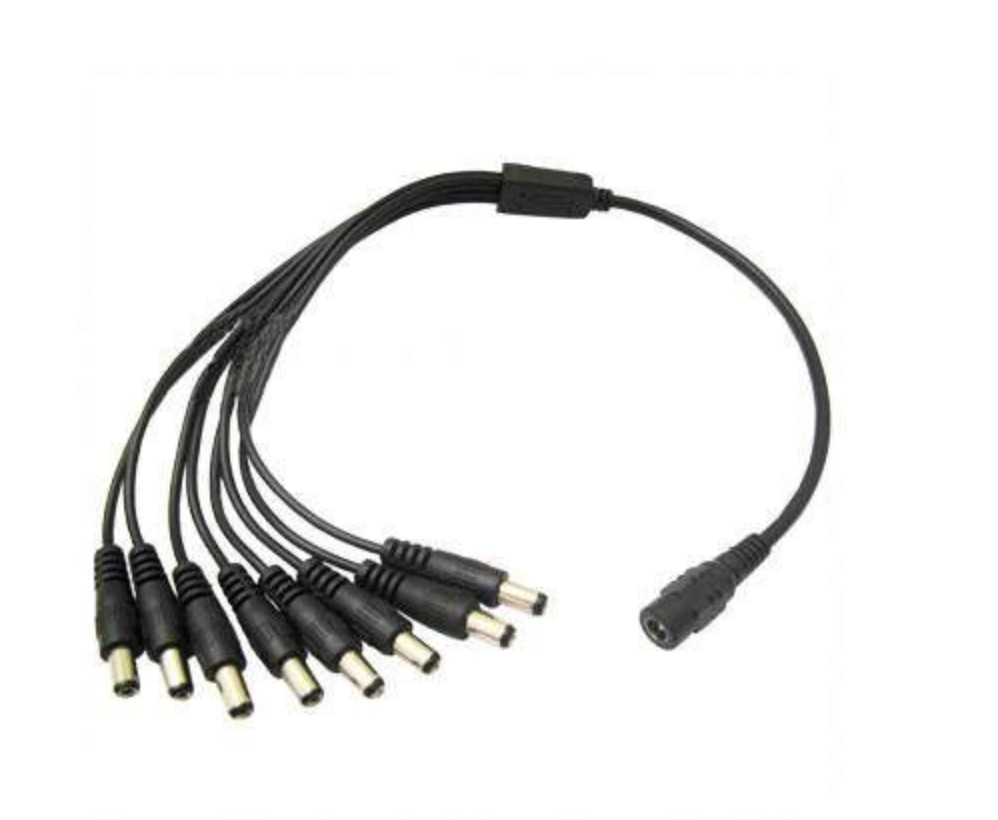 оединительный кабель для разветвления линии питания (1 гнездо DC на 8 штекеров DC), позволяет подключить к одному блоку питания несколько камер или микрофонов. Материал изготовления кабеля - ABS пластик, силикон, медь.