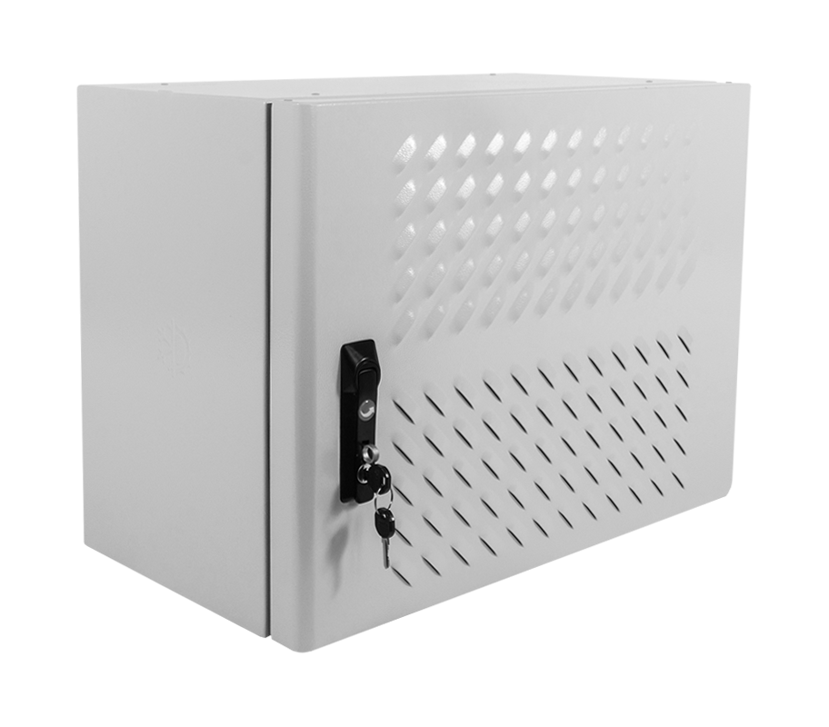Шкаф уличный всепогодный настенный из нержавеющей стали; передняя дверь вентилируемая; с нагревом и охлаждением; 6U; полезная глубина 420 мм; распределенная нагрузка 150 кг; -50...+45 °С; IP54; 48 кг; 450х620х530 мм; цвет серый (RAL 7035). Перечень установленного оборудования: Вентилятор, Нагреватель полупроводниковый, Разрядник перенапряжения, Индикатор напряжения, Гигростат, Термостат, Выключатель дифференциальный защитный, Выключатель автоматический, Датчик открытия двери, Розетка на DIN-рейку, Шина заземления.