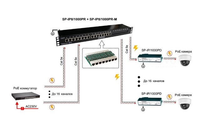 —SP-IP8/1000PR-M Устройство грозозащиты цепей Ethernet