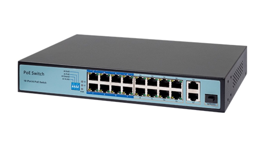 16 портов 10/100Base-Tx PoE RJ45 , 2 порта 10/100/1000 Base-T RJ-45 Uplink, 1 комбо порт 1000Base-X SFP Uplink ; IEEE802.3af, IEEE 802.3at. Количество портов PoE: 16, максимальная мощность PoE на одном порту: 30 Вт. Бюджет РoЕ: 150Вт. Режимы работы: AI Extend(CCTV),AI VLAN, AI-POE(watchdog), AI QoS . Расстояние передачи: 0~100м (не вкл.AI Extend ), 250м (Вкл. режим AI Extend, с 1 по 8 порты 10Мбит/с). Пропускная способность: 7,2Гбит/с, Скорость передачи пакетов: 5,4Мбит/с, таблица MAC-адресов: 8K. Питание AC100-240В. Температурный режим: 0℃~45℃. Габаритные размер (ДxШxВ) : 285мм * 180мм * 44мм. Установка в стойку (крепление в комплекте). Вес:2.1кг