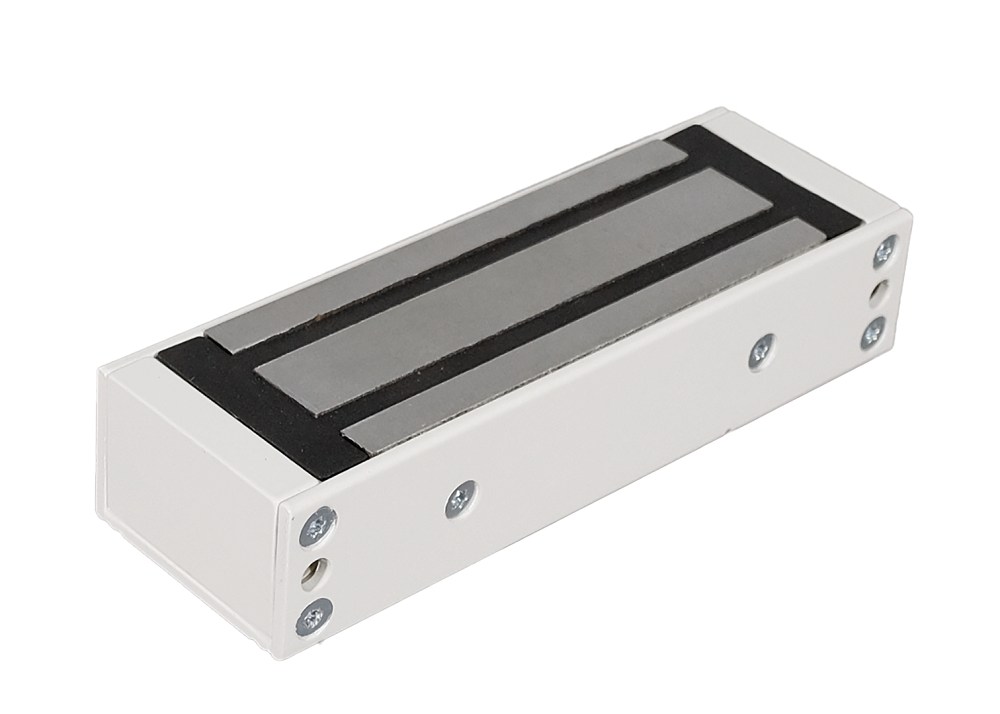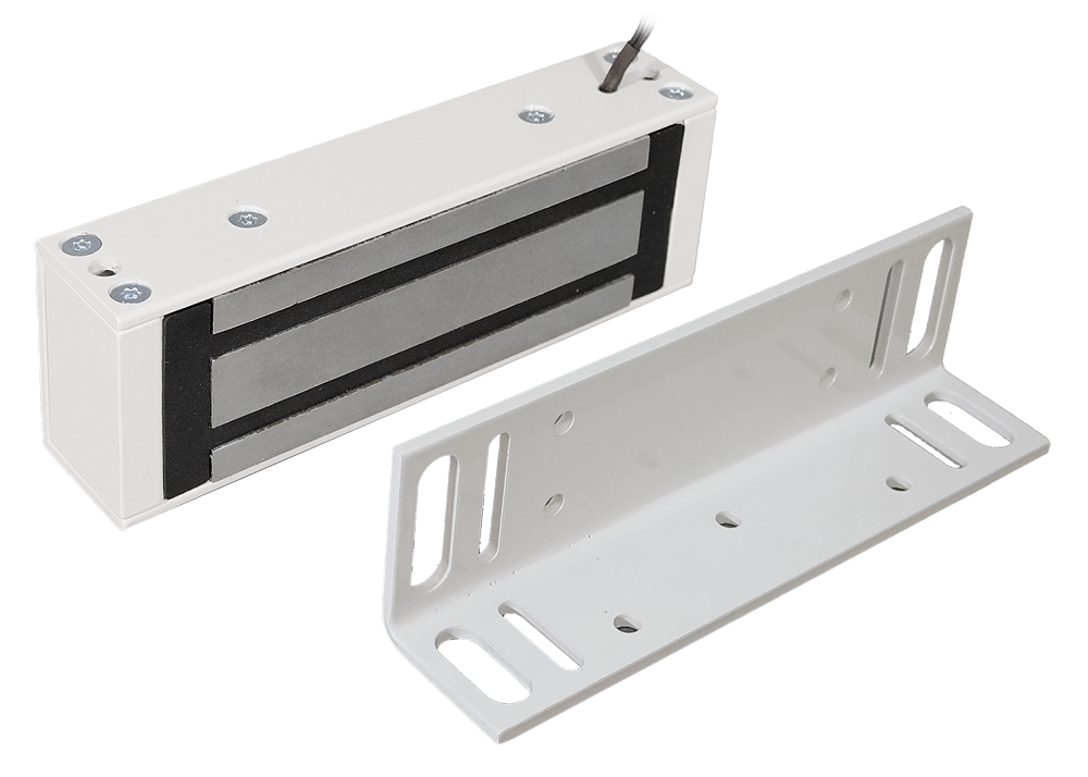 TS-ML400-RU1 (белый) Замок электромагнитный, 400 кг, 12В/400мА пост.тока, встроенная цепь размагничивания. В комплекте крепежный уголок.