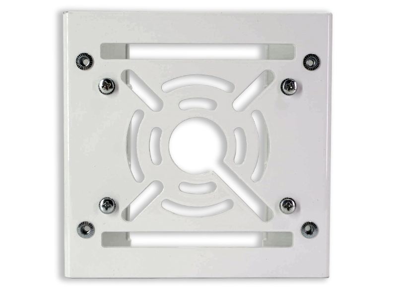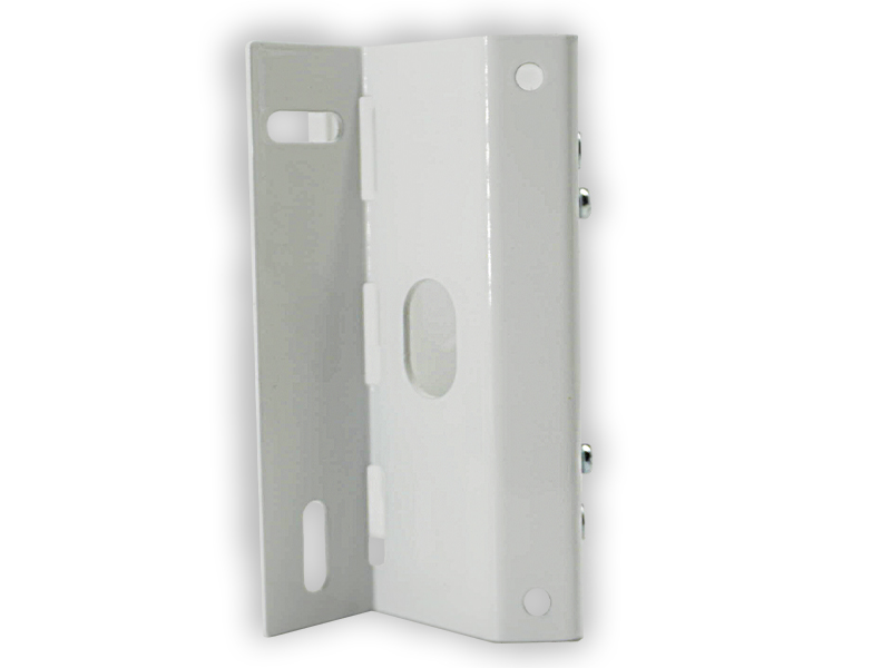 Угловой кронштейн Optimus УК-1 для камер видеонаблюдения, крепление на угловые поверхности, материал: оцинкованная сталь, толщина металла: 2 мм, размеры: 144×138×65 мм, масса: 0,56 кг, нагрузка: до 10 кг, диаметр мачты: от 76 мм, ширина крепежной ленты: до 24 мм, совместимые коробки: JB-100, JB-05, JB-01, PB-01, комплектация: кронштейн, винты М4 (4 шт.), особенности: резьбовые клепки для монтажа коробок PB-01.